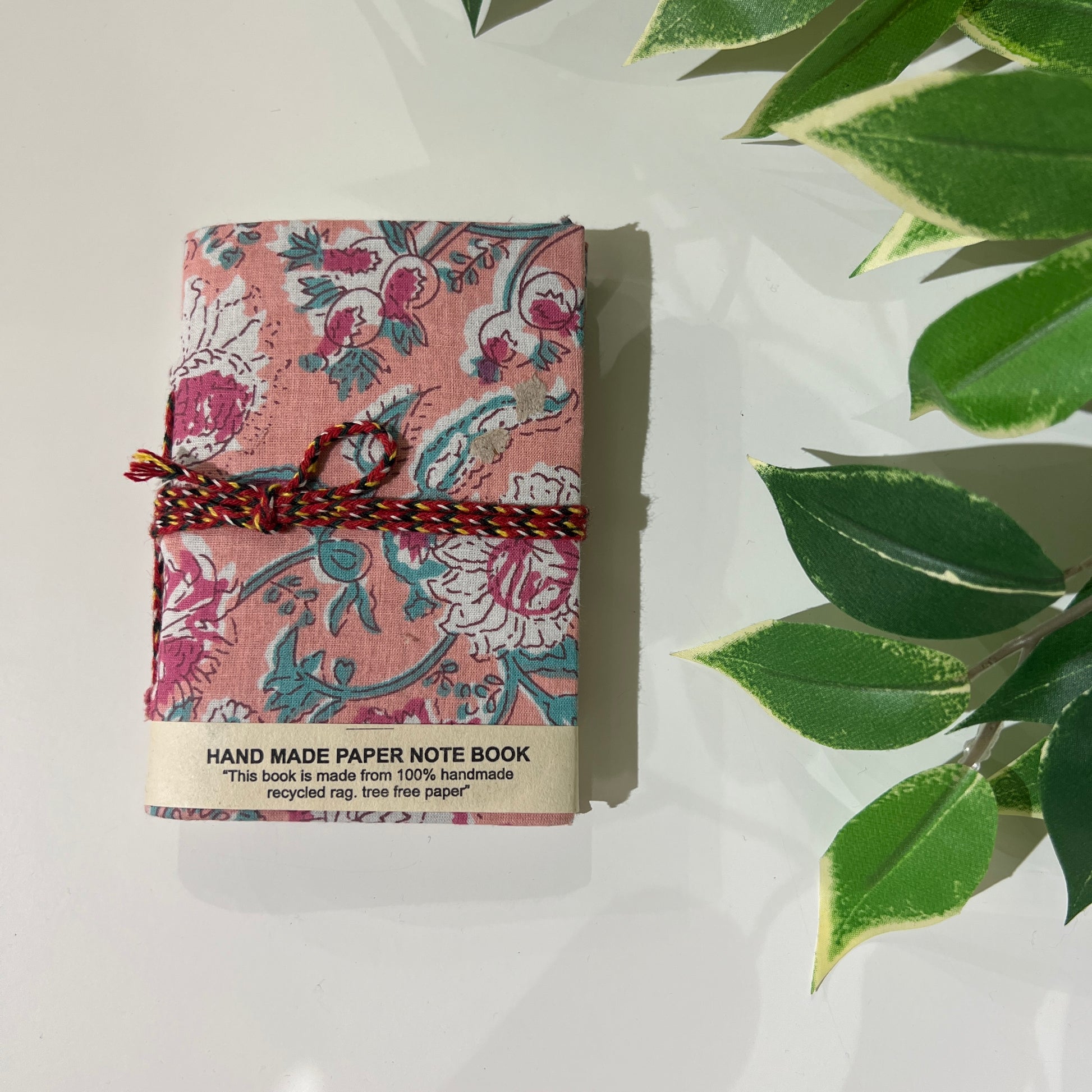 Estas libretas las traemos de la India, están hechas a mano con tela de algodón con estampado block print con tintes naturales. La tela puede tener alguna pequeña imperfección al ser el estampado hecho a mano. El papel es reciclado, también hecho a mano y contiene impurezas lo que le confiere un carácter especial y artesanal.