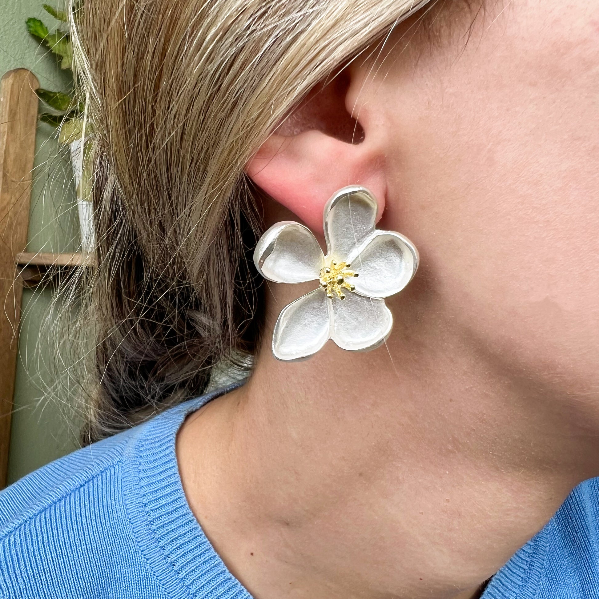 Los pendientes Nana son muy especiales al ser bastante originales y quedan preciosos puestos. Se trata de una flor grande blanca nacarada muy elegante. Quedarán geniales tanto para alguna flamenca como para ir arreglada a la feria, romería o a algún evento (para bautizos y comuniones son perfectos).