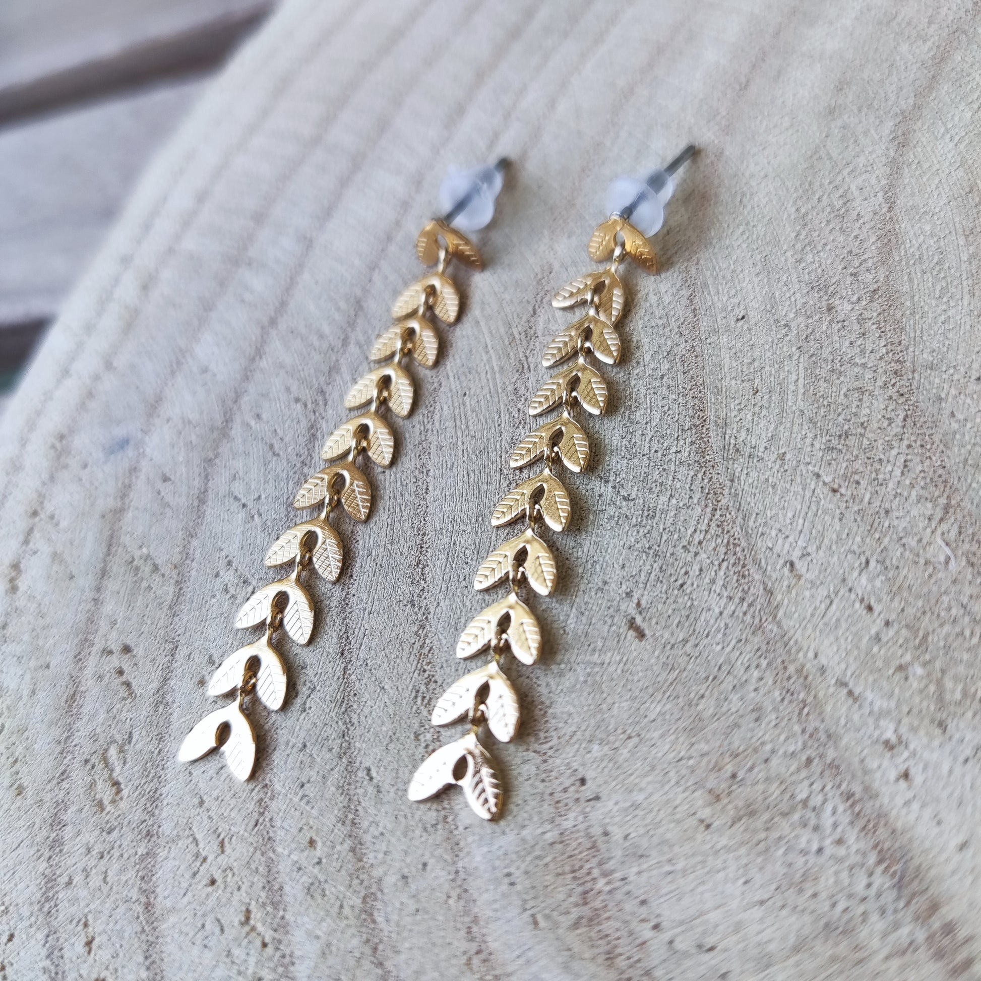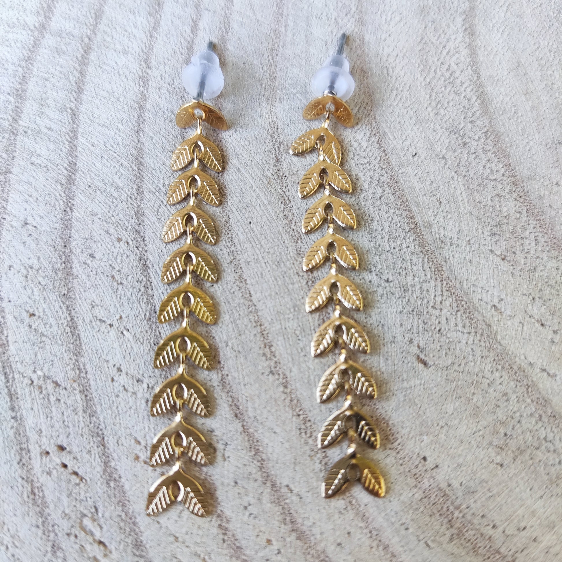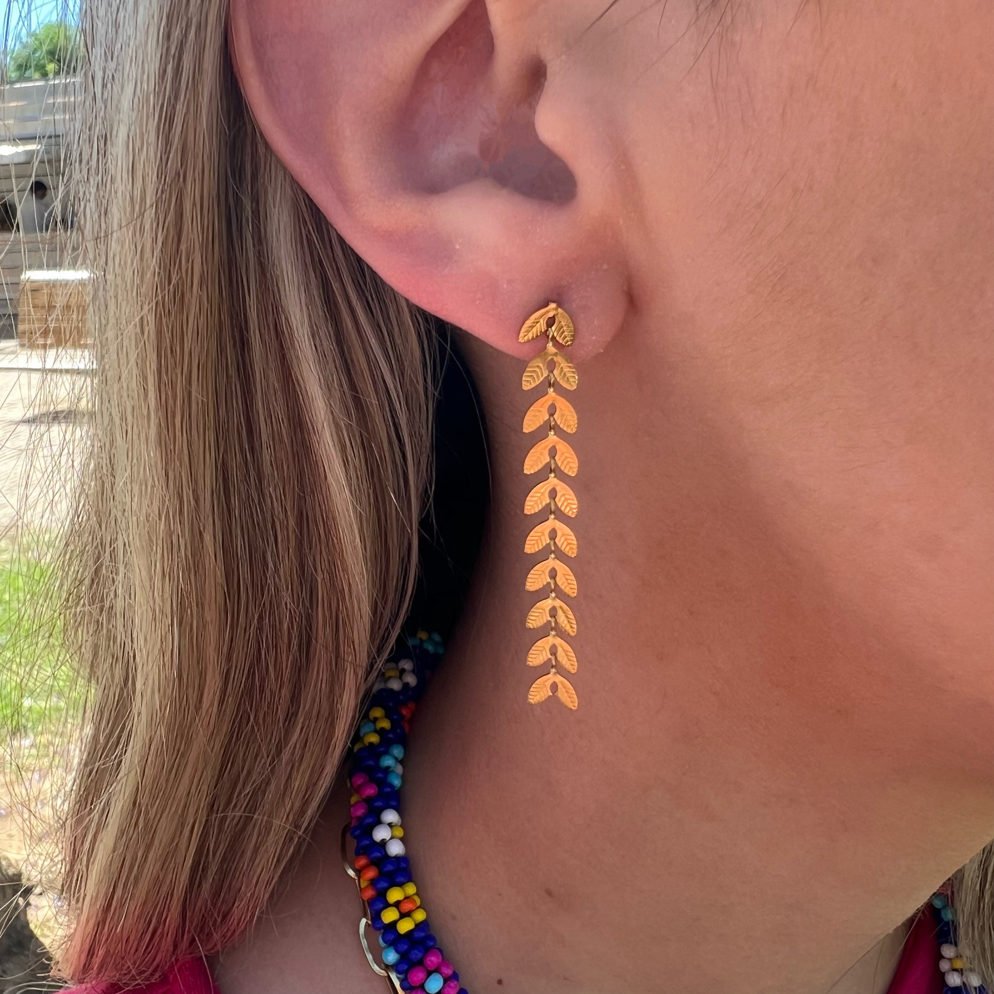 Pendientes dorados con forma de espigas.